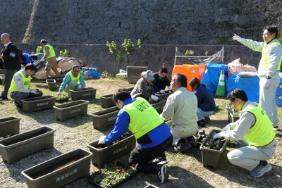 また、高所作業車による公園周辺に伸びた高木剪定も実施し、剪定作業以外の参加者は、園内でパンジーの苗植え作業を行いました。